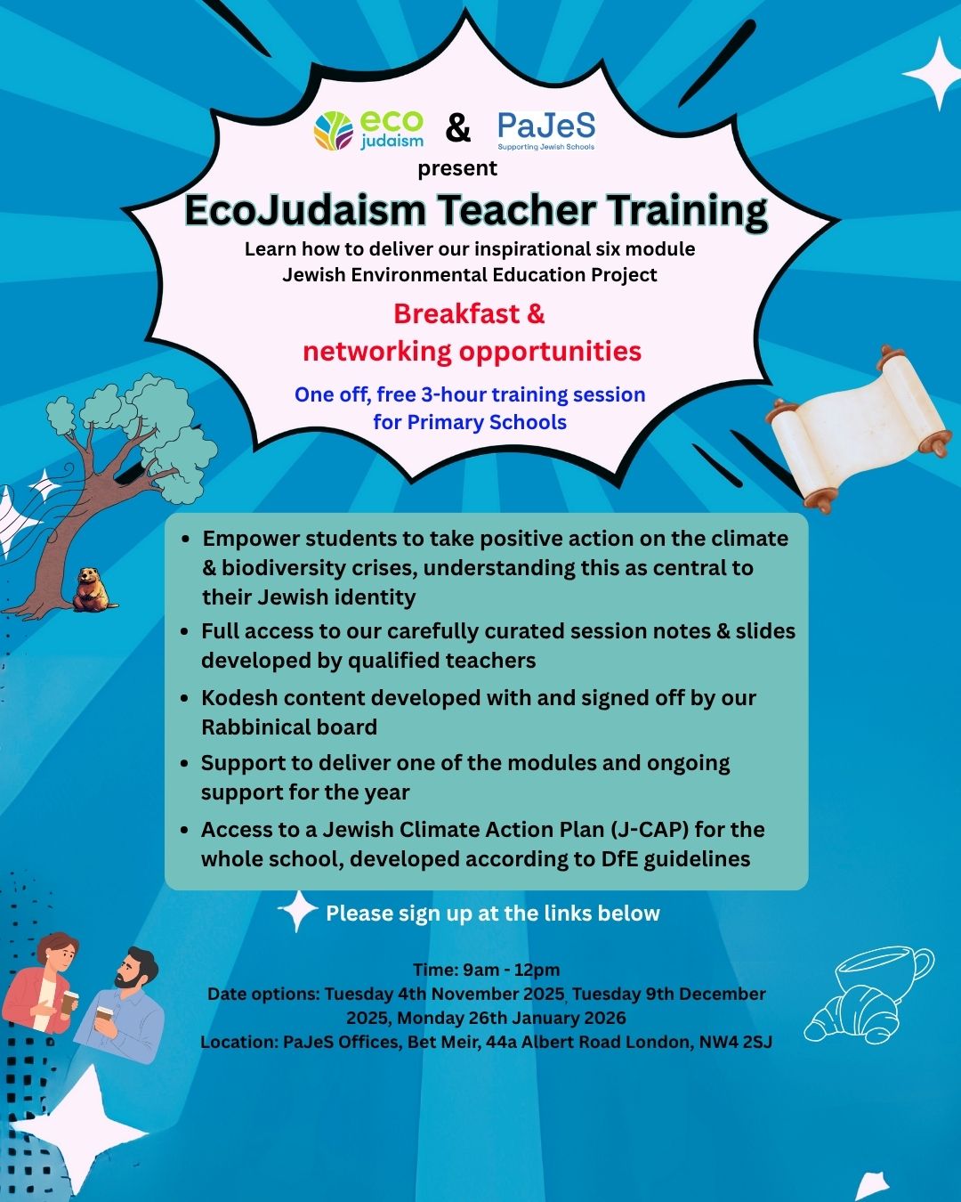 We are delighted to invite you to the joint ECO Judaism and PaJeS CPD . The training will focus on training educators in the use of Eco Judaism’s Jewish Environmental Project.